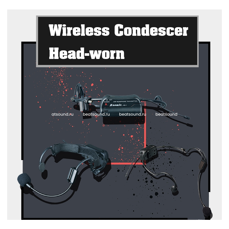 Миниатюрный передатчик находится на оголовье микрофона, что исключает из системы поясной радиопередатчик и кабель. Данная компоновка особенно популярна у фитнес-тренеров и иных спикеров, ведущих активную деятельность на сцене, когда традиционный бодипак на поясе и хрупкий провод к микрофону на голове представляют некоторые неудобства.
