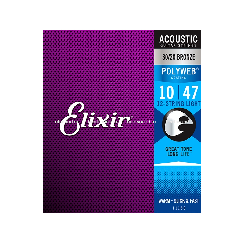 ELIXIR 11150 PolyWeb струны для 12-струнной акустической гитары, 10-47
