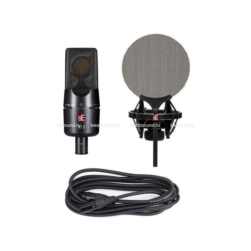 В комплекте: Конденсаторный студийный микрофон SE X1 S, металлический поп-фильтр, держатель типа паук, 3-х метровый микрофонный кабель