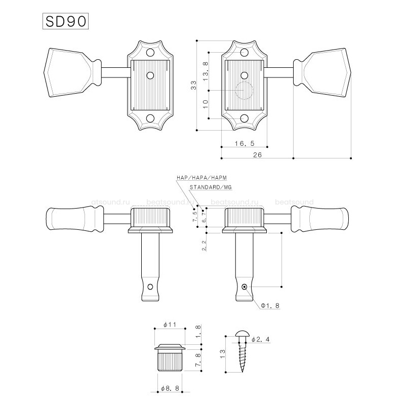 Колки и вставки расчитаны на отверстия (8.8 мм в диаметре) на те гитары Gibson (Classic, Custom Shop. таких гитар крайне мало) и другие японские инструменты, где такие отверстия, они встанут без доработки. Установка на 10 мм отверстия (Gibsom LP Std, SG Std, 99% гитар Gibson имеют 10 мм отверстия) требует установки в мастерской и самостоятельно выполнена быть не может. Для самостоятельной замены колков с 10 мм отверстиями мы рекомендуем герметичную модель SG-301. Читать подробнее