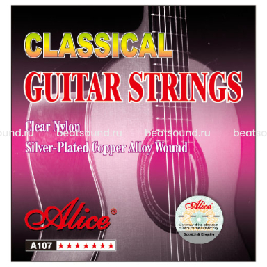 AC107-N Струны для классической гитары, нейлон - посеребренная медь, нормальное натяжение. Alice