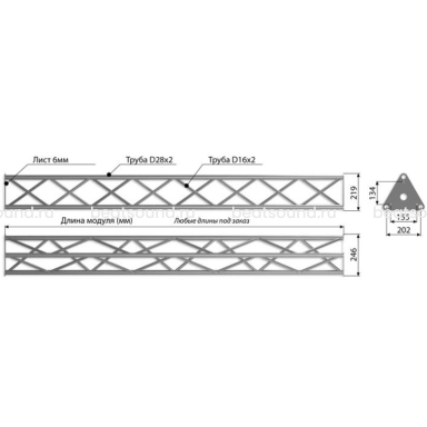 Прямой модуль треугольной конфигурации длиной 2000мм, d28х2 \ d16х2мм. Крепежный размер 155мм, М10. Рисунок перемычек круговой. Читать подробнее