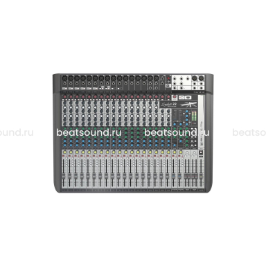 Soundcraft Signature 22 – компактный 22-канальный аналоговый микшерный пульт от знаменитого английского производителя. Микшеры линейки Signature – это высокопроизводительные консоли, которые известны своим отличным качеством и великолепным, очень чистым звуком, они отличаются широким динамическим диапазоном и впечатляющим соотношением сигнал/шум. Модель оборудована 16 микрофонными предусилителями Soundcraft® Ghost, которые обычно устанавливаются на топовые модели, высококачественными 100-мм фейдерами и четырехполосным эквалайзером Soundcraft® Sapphyre. Предусмотрены разъемы XLR и входы Hi-Z для прямого подключения гитар и других инструментов. Возможности коммутации включают также наличие двух входов USB и двух выходов. Модель оснащена набором встроенных эффектов Lexicon студийного качества, включая реверберацию, хорус, модуляцию и другие. Микшер Signature 22 способен длительное время работать в самых жестких условиях концертных площадок и туров, он заключен в прочный и надежный металлический корпус, оснащен универсальным встроенным блоком питания.