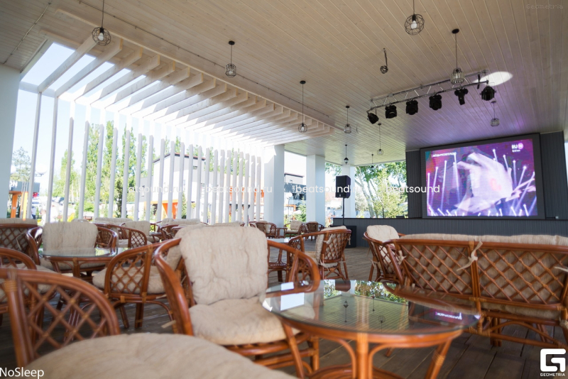 Яркую картинку на танцполе обеспечивают высокоэффективные RGBW-приборы бренда BS LIGHTING под управлением Nicolaudie SS2, а именно BEAM-головы и PAR-прожекторы заливного света. Достойное звучание кавер-групп обеспечено мощными бандпасс-сабвуферами YAMAHA DXS18 и активными сателлитами YAMAHA DXR15, штатные радиосистемы - новые SENNHEISER XSW, коммутируется все это добро микшером YAMAHA серии MG. Счастье было бы не полным, если бы не караоке-система EVOLUTION PRO2, дополняющая облик многофункциональной летней эстрады и дающая любому гостю шанс почувствовать себя как минимум Бейонсе. :-) Радиосистемы для гостей подобраны соответствующие - SHURE BLX с капсюлем BETA58 будут по душе даже самым заядлым караокеманам!)